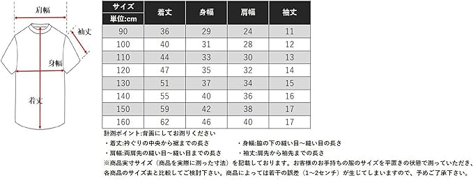 - SIZE:100 肩幅:27.5cm 袖丈:12.5cm ゆき丈:26.5cm 身幅:30cm 着丈:38.5cm