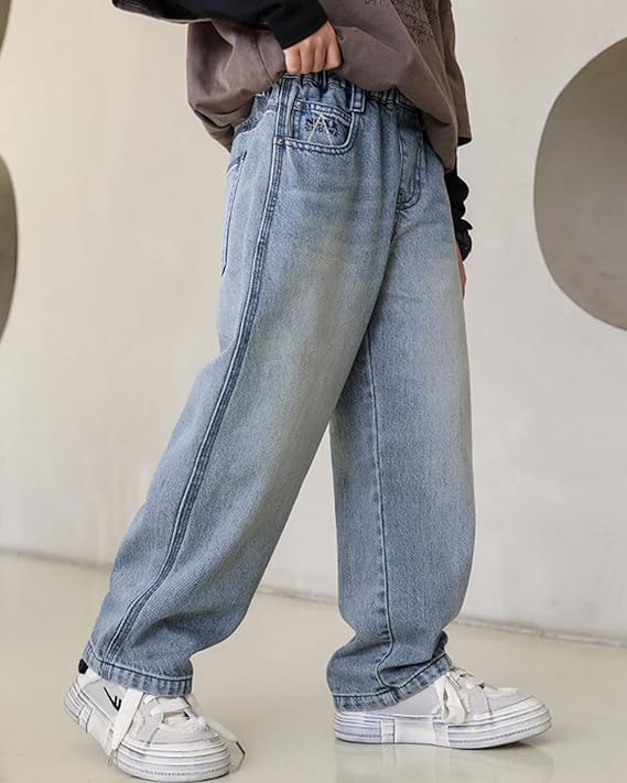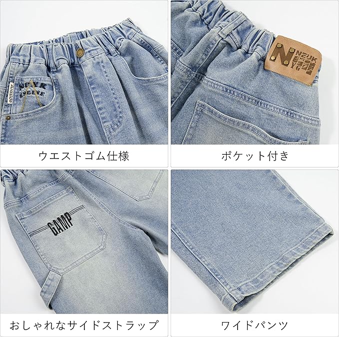 - 【素材】柔らかい綿混紡デニム生地、太ももから裾まで広がるスタイル、ファッション性と機能性を両立する男の子ワイドデニムパンツ。