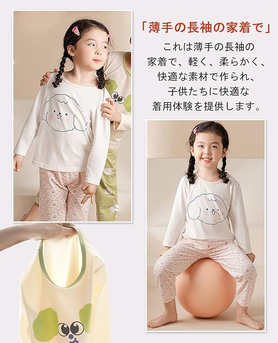 - これは薄手の長袖の家着で、軽く、柔らかく、快適な素材で作られ、子供たちに快適な着用体験を提供します。家で日常的に着用する場合や寝るときにも、特に快適です。