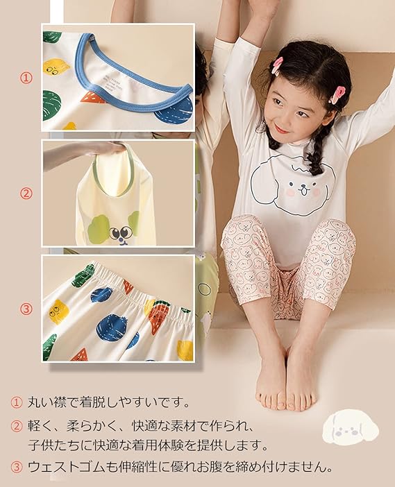 - この長袖パジャマの外観デザインも非常に可愛く、子供たちが好きな柄が印刷されているため、子供たちの好奇心や想像力を刺激し、彼らの楽しみを増やすことができます。子供たちが着用するのに適した柔らかく、通気性があり、かわいらしい寝間着で、子供たちは快適で温かく、楽しい睡眠時間を過ごすことができます。