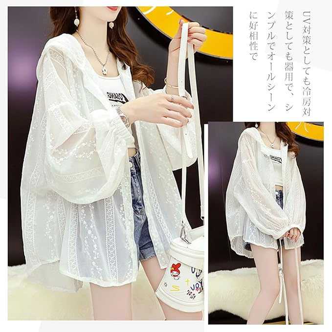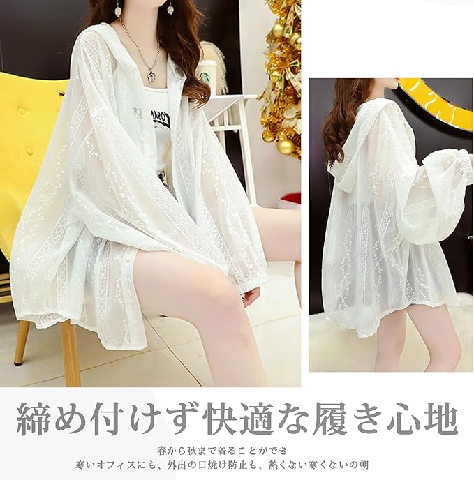 Product Description この商品について カーディガン レディース 薄手 長袖 冷房対策 花柄 刺繍 シースルー UVカット 肌魅せ お洒落 前開き 上品 エレガント 透け感 オフィス 体型カバー 可愛い カジュアル 日焼け ゆったり 着痩せ おしゃれ 通勤 春 夏 秋 【ふわっと自然に体型カバー】ゆったりとしたシルエットで幅広い体型をカバーしてくれて、通気性も高く、汗をかいてもベタつきにくく、スタイルアップ効果が期待できるのもポイント。 【接触冷感、UVカット】春から秋まで着ることができ、寒いオフィスにも、外出の日焼け防止も、熱くない寒くないの朝、夜にも保温出来ます。UV対策としても冷房対策としても器用で、シンプルでオールシーンに好相性で。 【着回し抜群の一枚】窮屈感がないストレスフリーな着心地なので、着回し力抜群で、ワンピースやシンプルなワイドレッグパンツと組み合わせて、上品な印象もアップできます。 【安心サポート】本商品は色が褪めなく、デジカメ撮影をしておりますので、お使いのPC環境等により、画像の色が実物と多少異なる場合がございますが、 ご予めご了承下さいませ。製品に何の問題がございましても、24時間以内に必ず返信しておりますので、お気軽にメールにて御連絡くださいようお願い致します。全力でご対応させていただきます。