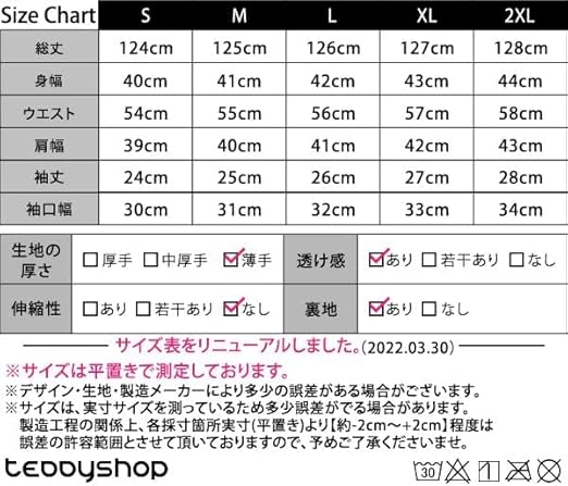 Product Description この商品について セット内容・1点・リゾートワンピース シャーリング効果で足元スラリ!袖&膝下の透け感が気分も涼しく 体型カバー シースルー かわいい おしゃれ カバーアップ ビーチウェア ハワイ 沖縄 旅行用 【商品詳細】・薄手・伸縮性:なし・透け感:あり・裏地:あり(袖、ひざ下は裏地なし) Size S 総丈 124cm 身幅