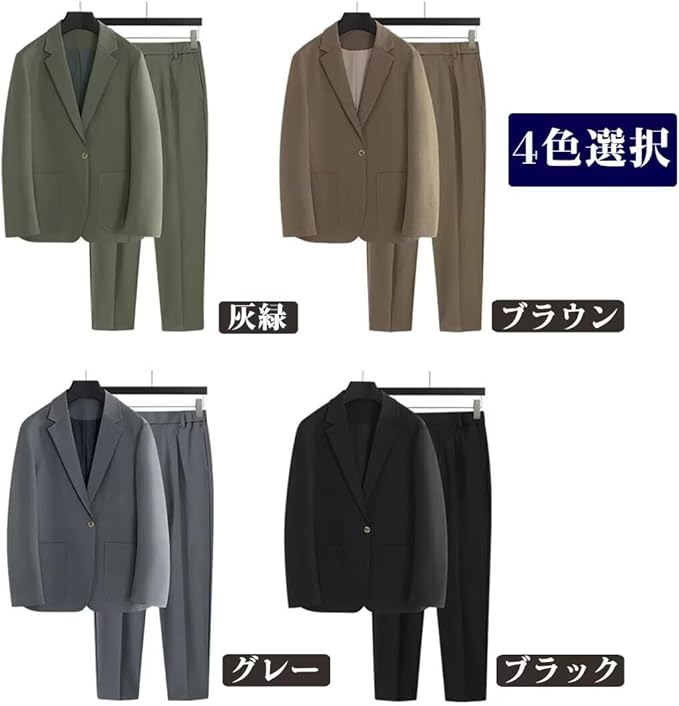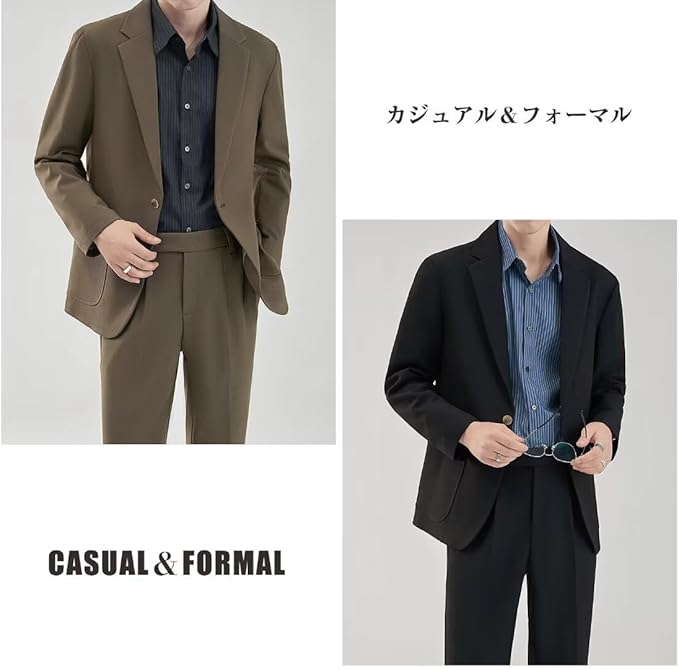 - 【カジュアル&フォーマルを兼ねるセットアップ】スーツジャケット&テーラードジャケット両用ジャケットとして使えます。 シンプルなデザイン&無地なので、シャツから白のyシャツ、tシャツまで何でも合わせることが出来ます。ちょうどいい厚さで、秋・冬・春これからの季節にピッタリなスーツ、スッキリとしたスタイルに魅せてくれる計算しつくされた絶妙なシルエットが魅力的。