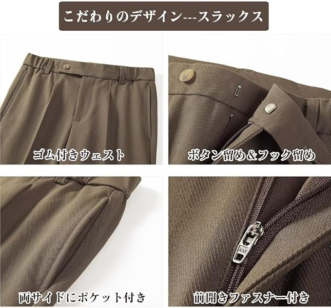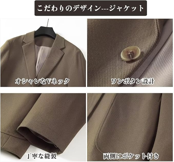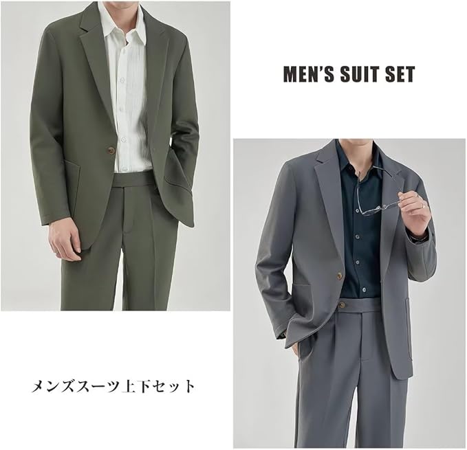 - 【こだわりのワンボタン設計】前はワンボタンデザインなので、男の色気を引き出す、ゆったりシルエットが作るスーツです。レジャーカジュアルスタイル、着こなし幅が広がる、存在感のあるな一着。シンプルなデザインで、誠実な雰囲気を醸し出しています。実用でファッション感が溢れる!細部にまでこだわったデザインの、気品ある通気性良いスーツです。ジャケット・スラックスのツーピースセットアップです。