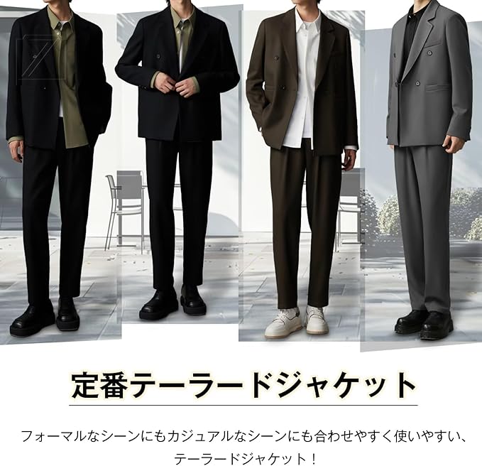 - [幅広く着用できる] 春秋のロングシーズン楽しめるテーラードジャケット。普段着としてはもちろん、さまざまな日常のシナリオ(通勤、旅行、通学、テレワークでの使用など)で役立ちます。