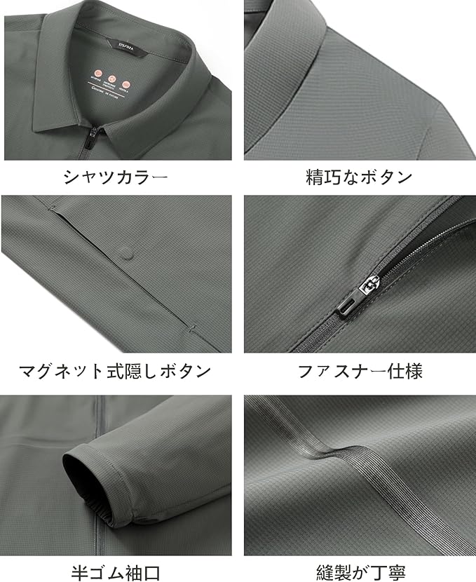 Product Description この商品について 【夏の必須アイテム!】ワンタッチ磁石ポケット搭載!メンズ夏服の新定番「アイスシルク冷感ジャケット」。物を落とさない・シルエットを崩さない機能性と、第二の肌のような超軽量さが両立。 【日差し対策も完璧】UVカット機能付きジャケットで、ビジネスカジュアルなデザイン!オフィスでも街中でも自然なスタイリッシュ感。 【コンパクト&シワ知らず】コンパクトに折りたためる軽量設計!シワにならない魔法の素材。鞄にスッポリ収納できる便利さ。 【汗を瞬時に逃がす快適さ】薄手なのに速乾&通気性抜群!ジメジメした日もサラッと涼しい。 【本当の「ジャケット」らしさ】従来のUVスーツと違い、ジップデザインの本格派ジャケット!動きやすさとスタイルを両立。