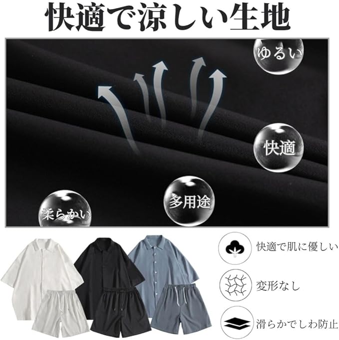 - シルク生地を使用したメンズ2点セットは柔らかくて肌触りが涼しく滑らかで、垂れ感