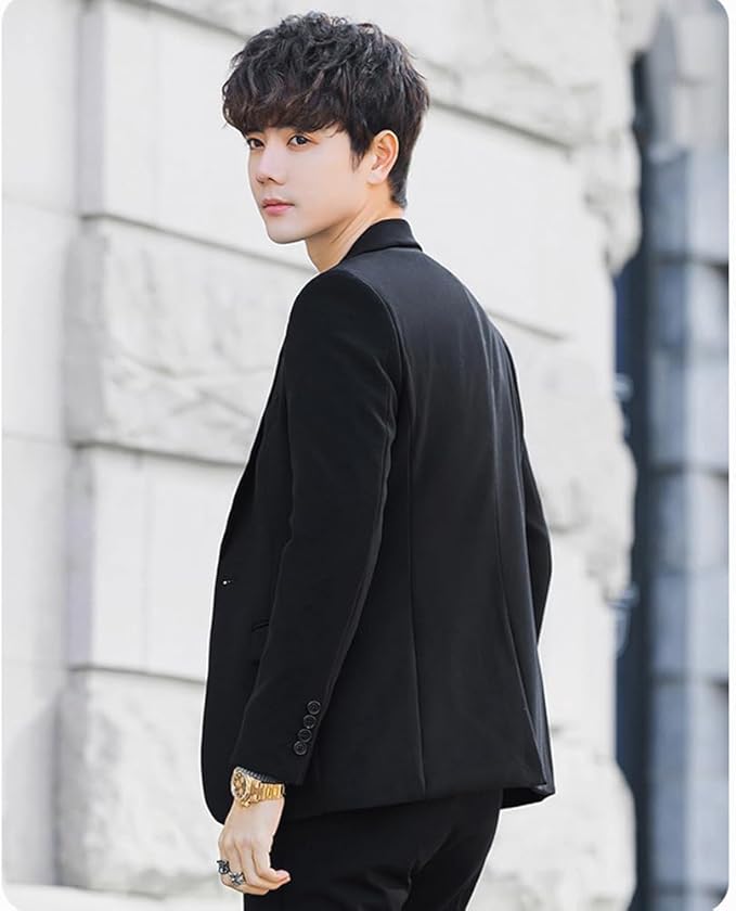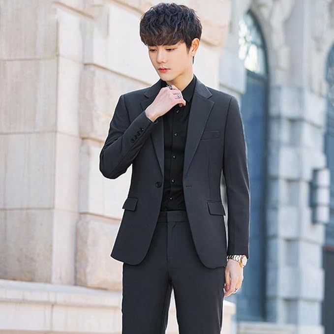 - 【こだわりのディテール】やや細身の設計で体に自然にフィットさせた美シルエットを実現、全体的な印象もスタイリッシュに魅せてくれます。肩、首回りがフィットし程よくふんわりとしたラペル(襟)部分が立体感を演出します。前はワンボタンデザインなので、男の色気を引き出す、ゆったりシルエットが作るスーツです。サイドポケット2つが付いております。袖口にはシンプルでありながらも洗練された印象を与える三つボタン。シンプルなデザインで、誠実な雰囲気を醸し出しています。ジャケット・スラックスのツーピースセットアップです。